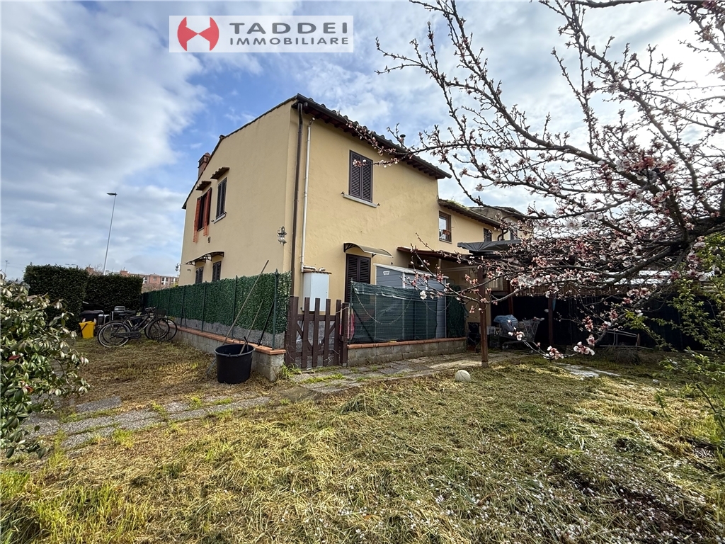 Firenze-Viale Nenni, in piccolo complesso abitativo, vendesi 3 vani con giardino recintato di mq.200 con tre posti auto di proprietà esclusiva. L'appartamento si sviluppa al primo piano, con scala indipendente, dove troviamo una bella cucina abitabile con doppia esposizione, bagno finestrato con doccia e due camere, di cui una singola e una matrimoniale che affaccia sul giardino sottostante, infine abbiamo una mansarda con accesso da scala nel corridoio. Soffitti con travi a vista. Bel giardino con gazebo sui due lati della casa. Posizione ottima, tutti i servizi comodi, riscaldamento con gpl e acqua del pozzo. Ape in elaborazione. - CLASSE ENERGETICA IN ELABORAZIONE
